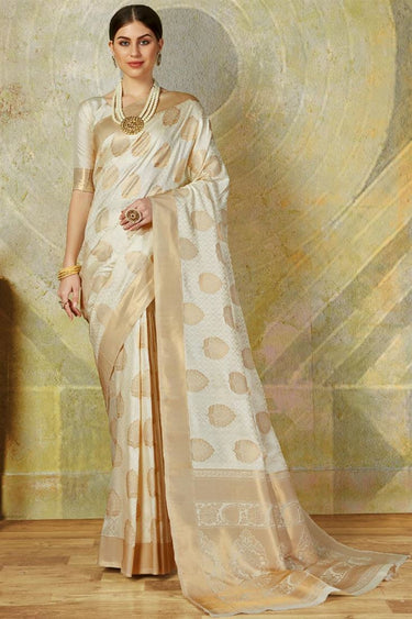 Weaving Work In Beige Color Banarasi Style Festival Wear Art Silk Saree