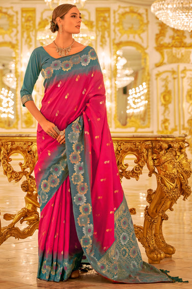 Weaving Work Rani Color Bright Banarasi Silk Saree