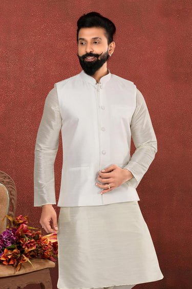 Wedding Wear Dhupion Silk Fabric Designer Readymade Jacket For Men In White Color