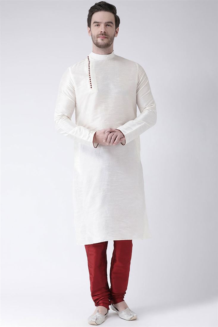 White Color Dhupion Silk Fabric Festival Wear Stunning Kurta Pyjama