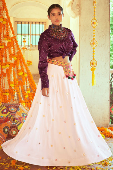 White Color Fantastic Cotton Fabric Navratri Special Top Skirt Set