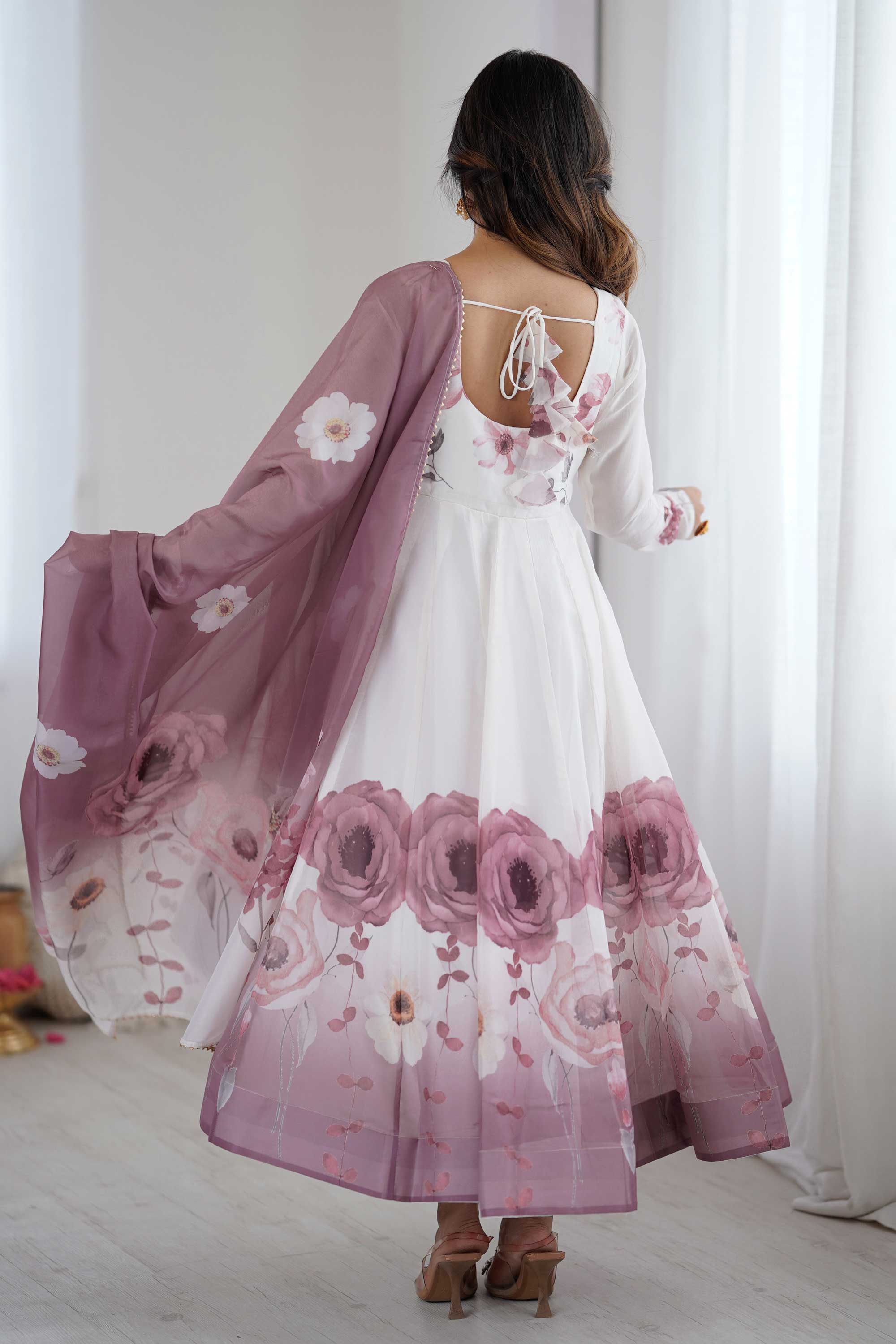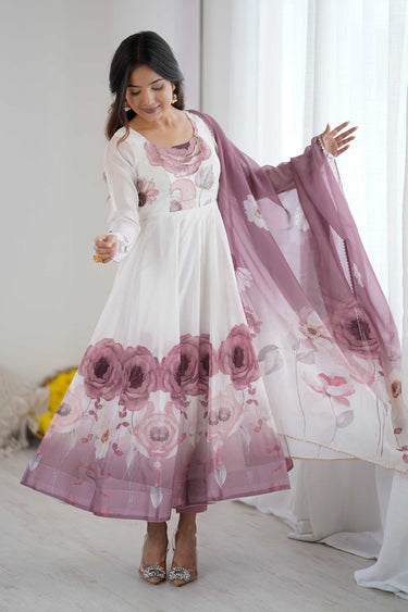 Bring charm to any occasion with the Majesty Floral Print Readymade Anarkali Dress. This beautifully designed outfit combines a lively floral pattern with a figure-enhancing Anarkali fit. Perfect for festive celebrations or casual evenings, the dress balances style and ease with its soft, comfortable material and pre-stitched convenience. The sophisticated design ensures you always look your best, while its versatile look pairs effortlessly with heels, flats, or sandals. Whether attending a cultural event or enjoying a relaxed outing, this dress adds an instant touch of grace to your appearance.