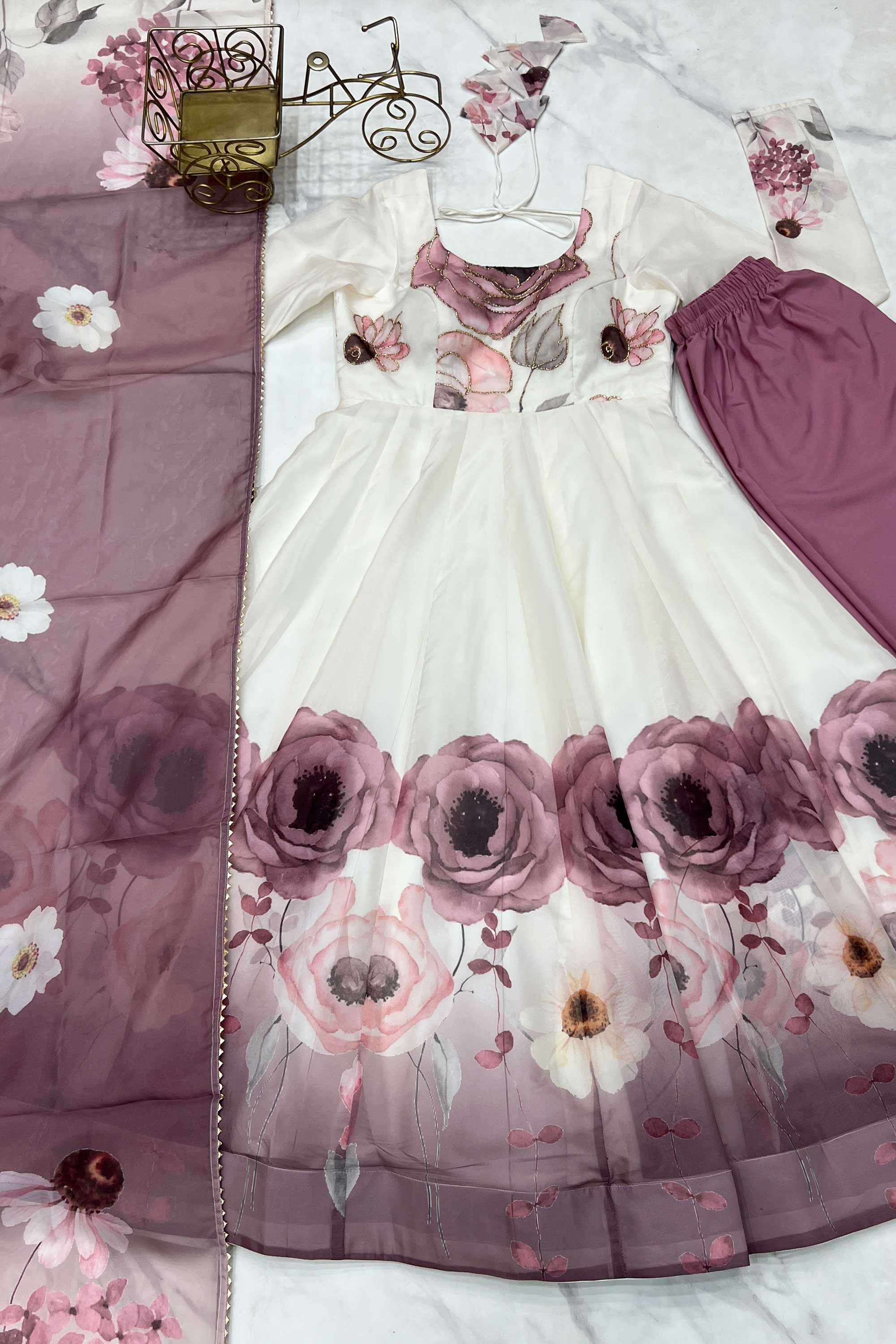 Wine Floral Print Readymade Anarkali Salwar Kameez