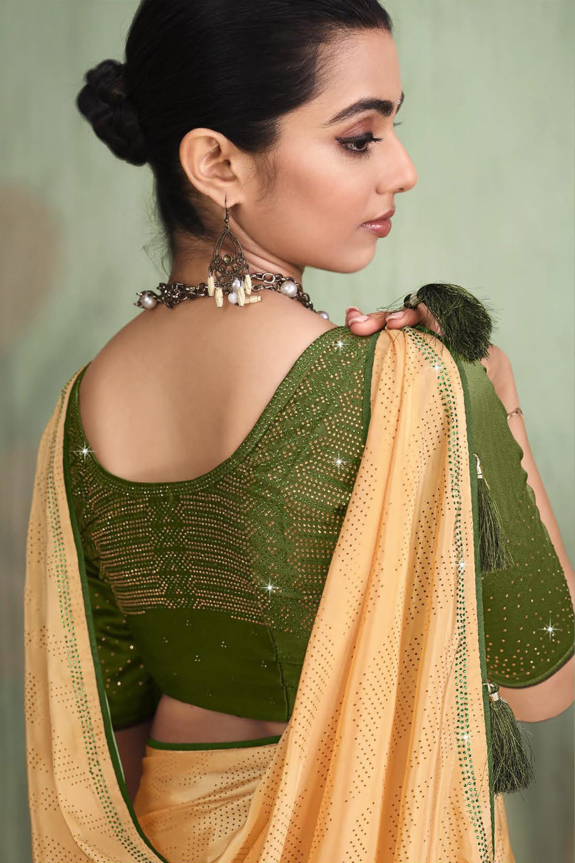 Winsome Beige Color Satin Crepe Saree With Contrast Blouse