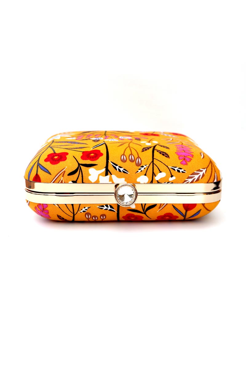 Show off your flair for fashion with our artistic Women's Embellished Art Silk Printed Box Purse Clutch. Designed to steal the show, this accessory features exquisite embellishments, artistic prints on silky fabric creating a stunning effect. Ideal for formal events or date nights, this box clutch easily houses your must-haves like a phone, cards, or cosmetics. Opt for handheld elegance or swing it stylishly over your shoulder with the provided chain strap. Elevate your accessory game with this gorgeous clutch.
