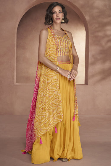 Yellow Art Silk Reception Wear Readymade Lehenga Choli With Embroidery Work