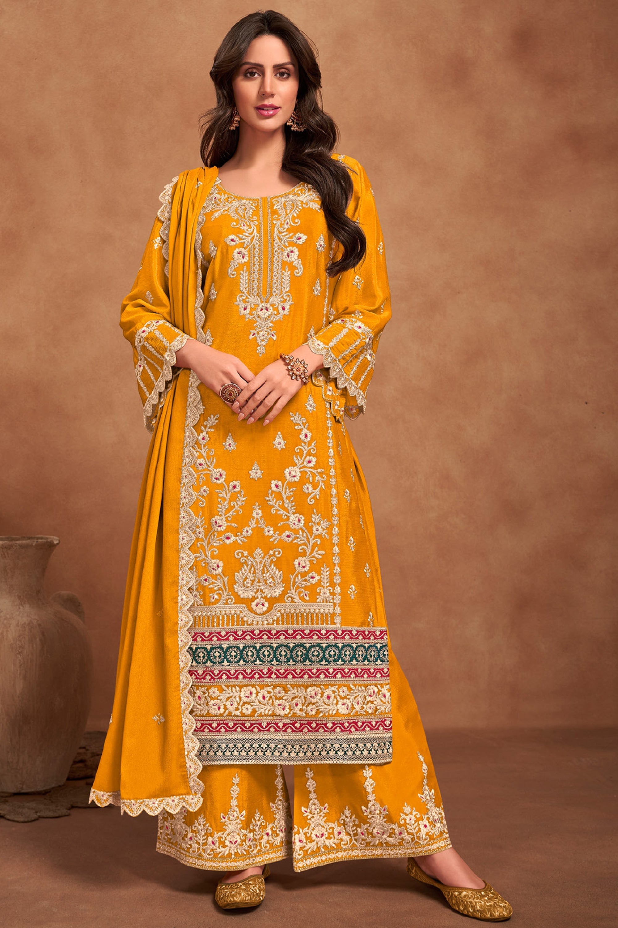 Yellow Color Chinon Fabric Beatific Readymade Palazzo Suit