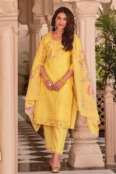 Choose our Readymade Yellow Color Salwar Suit to experience the perfect combination of comfort, style, and craftsmanship. Elevate your fashion game and make a lasting impression with this elegant and trendy attire.