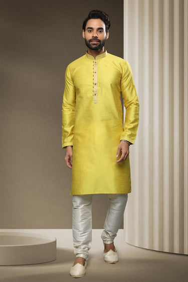 Yellow Color Jacquard Silk Fabric Festive Wear Readymade Kurta Pyjama For Men