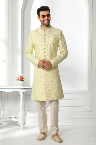Yellow Silk Fabric Magnificent Readymade Men Sherwani For Wedding Wear